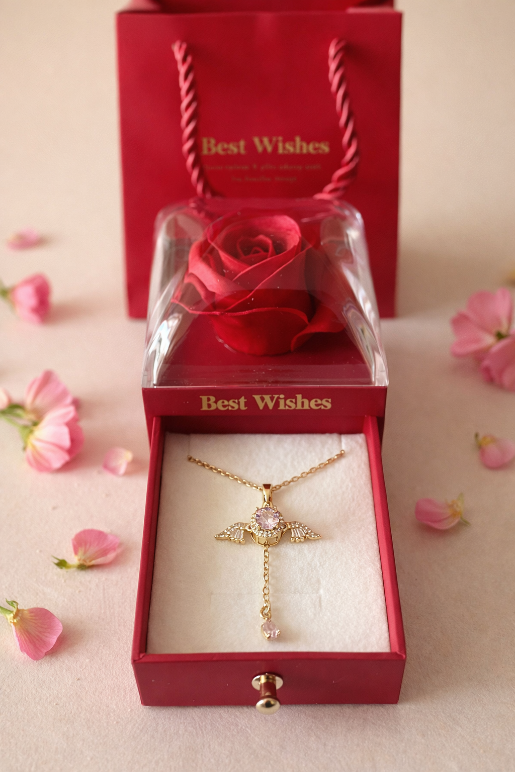 Surprise, élégance et amour réunis dans un seul coffret. Ce bijou soigneusement emballé est prêt à être offert à la femme qui fait battre votre cœur 💛