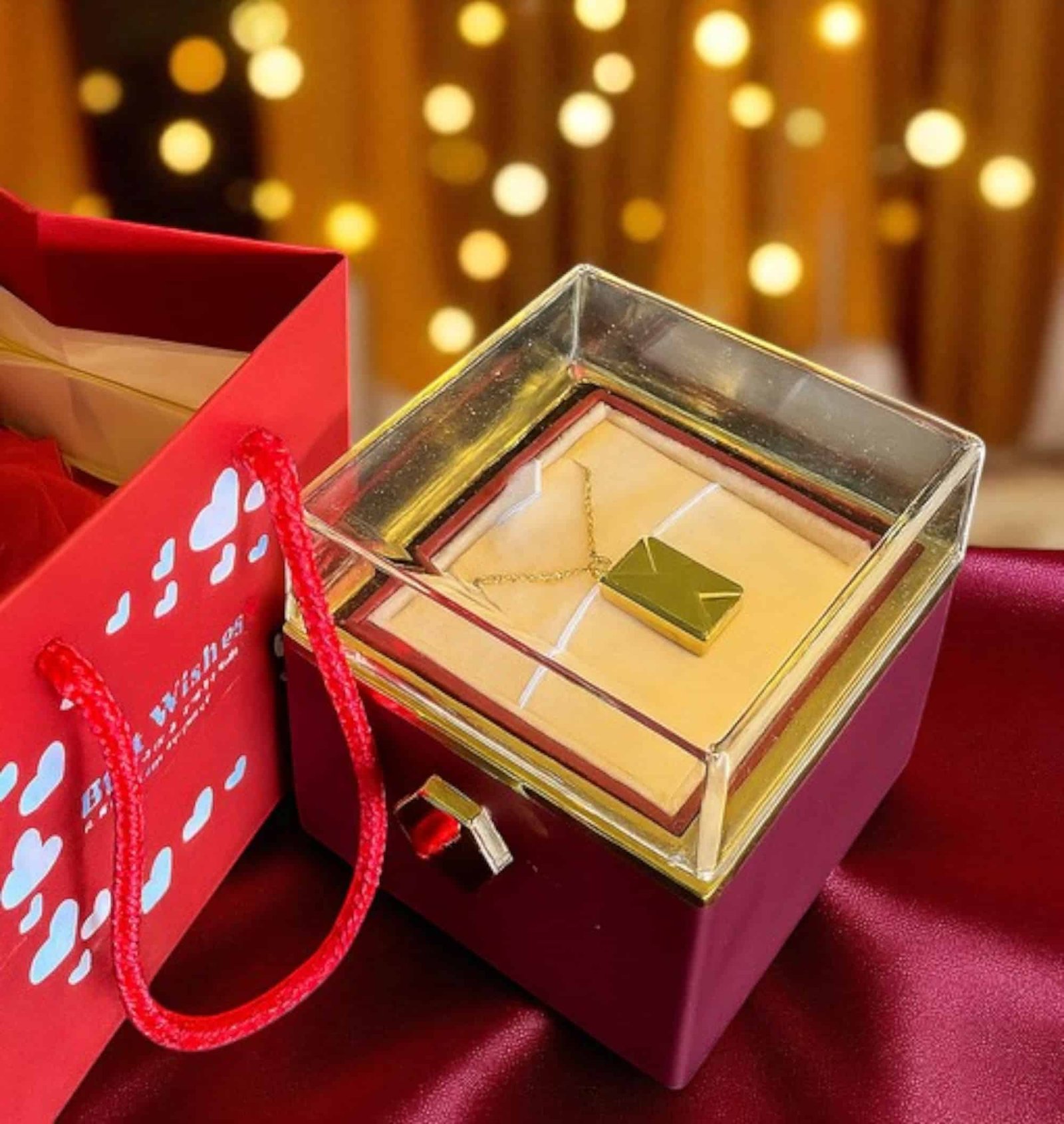 Ce bijou soigneusement emballé est prêt à être offert à la femme qui fait battre votre cœur