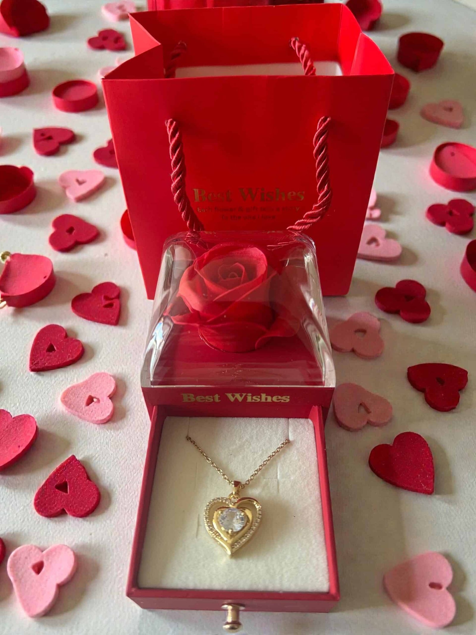 Ce bijou soigneusement emballé est prêt à être offert à la femme qui fait battre votre cœur